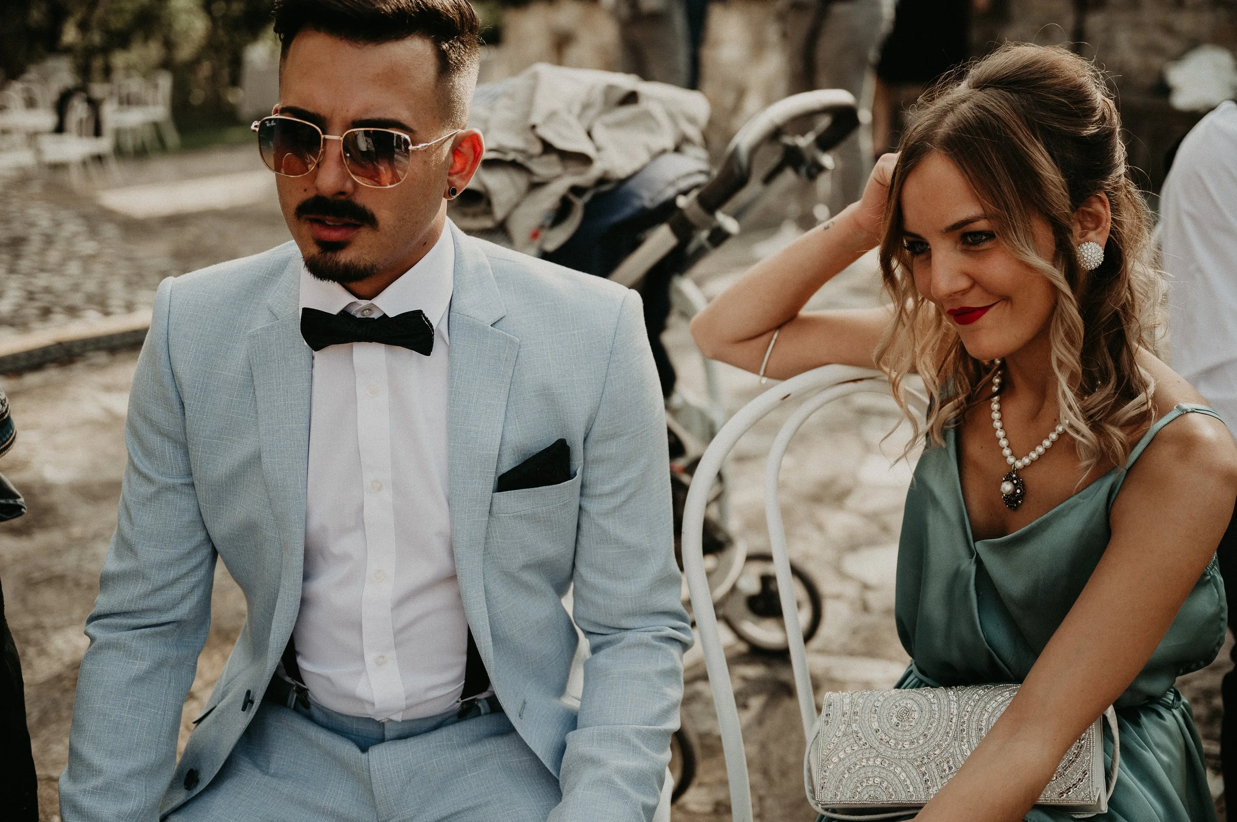 - Zu auffällige Farben und Muster: Vermeide es, mit deinem Outfit die Aufmerksamkeit von der Braut und dem Bräutigam abzulenken. Knallige Farben wie Neon oder sehr auffällige Muster sind in der Regel nicht passend. Ein klassisches, elegantes Outfit ist immer die bessere Wahl.